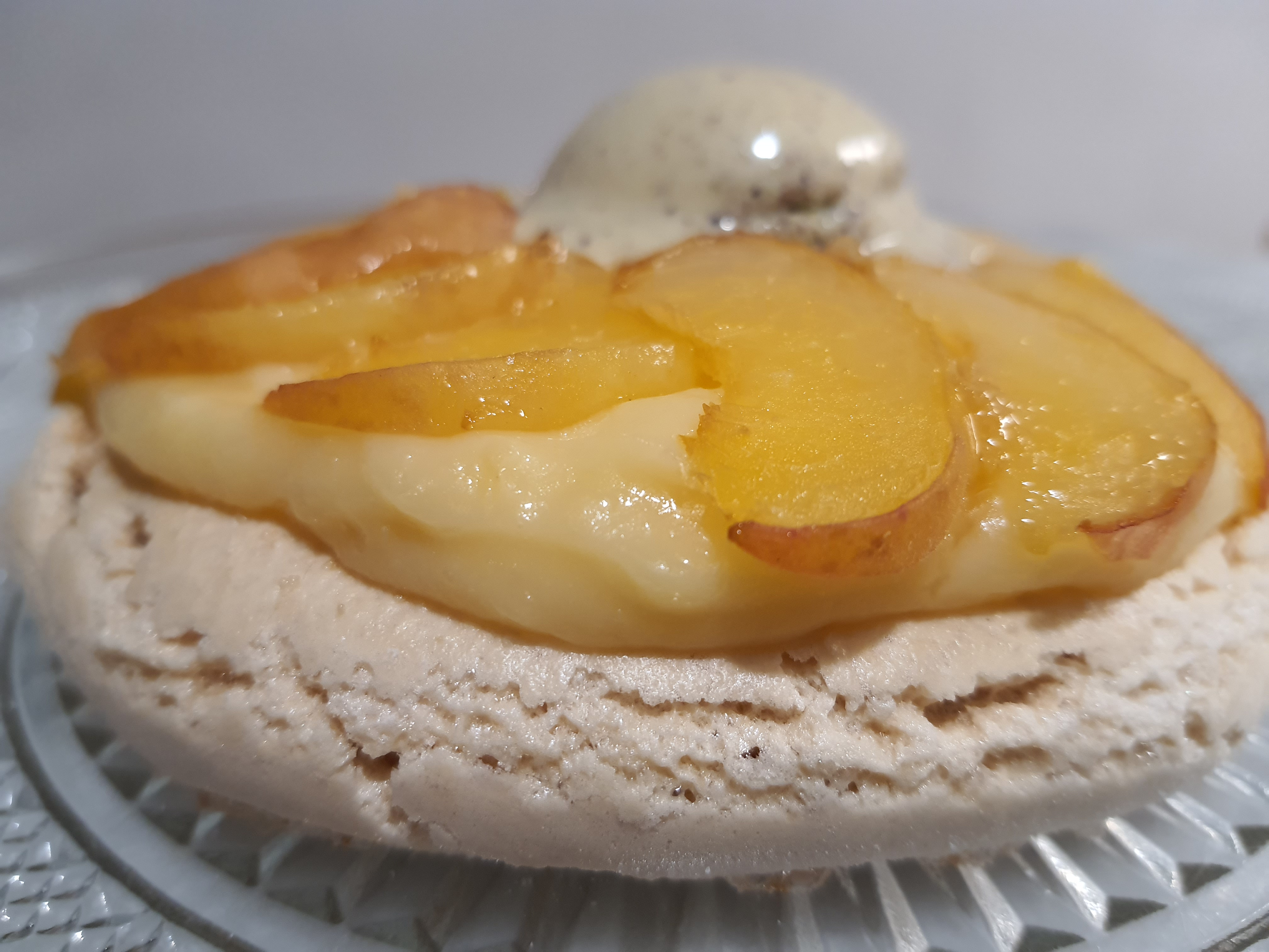 Merengue crujiente con albaricoque y pistachos