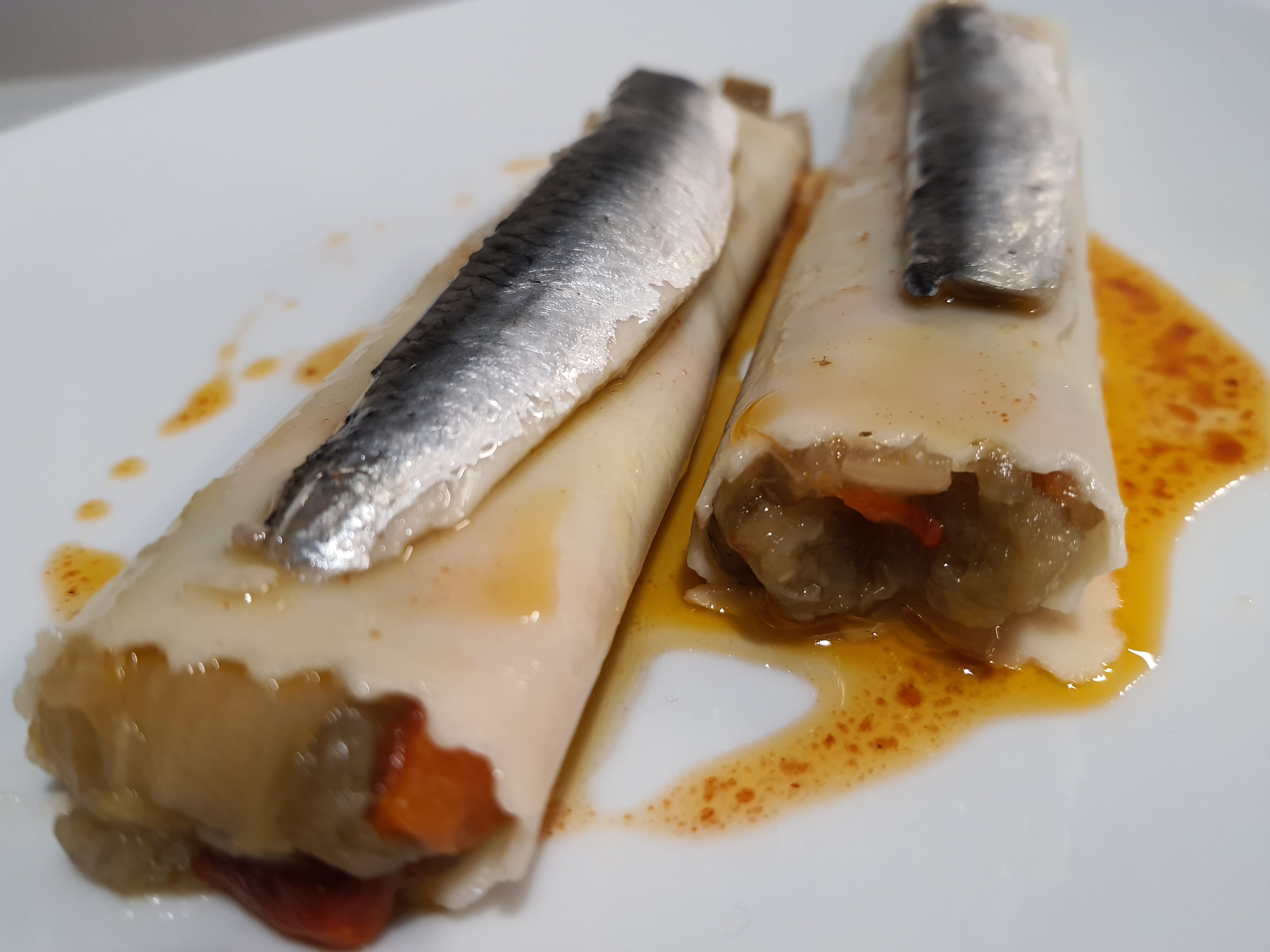 Canelones de verduras asadas con boquerones