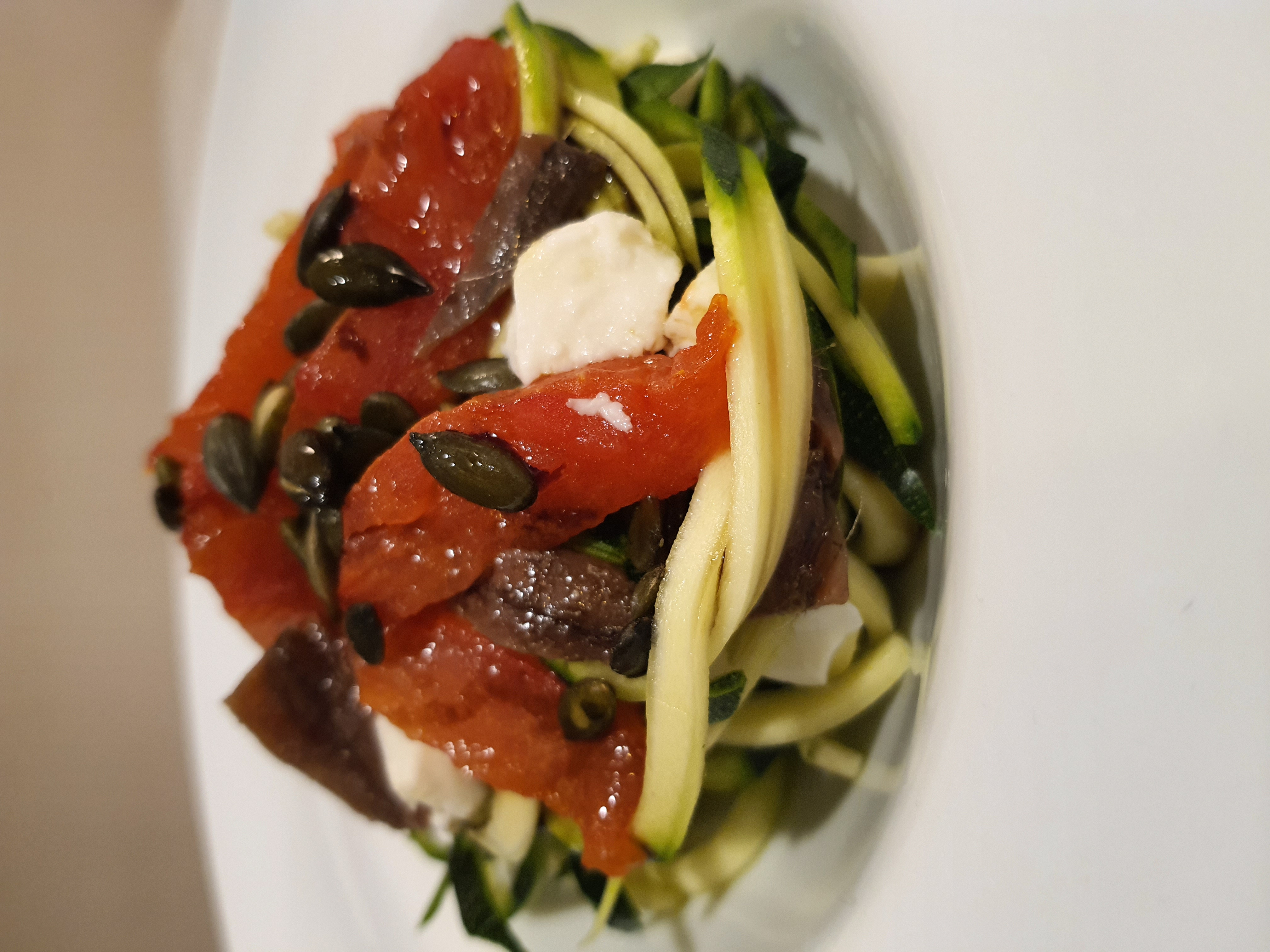 Tallarines de calabacín, mozzarella y anchoas