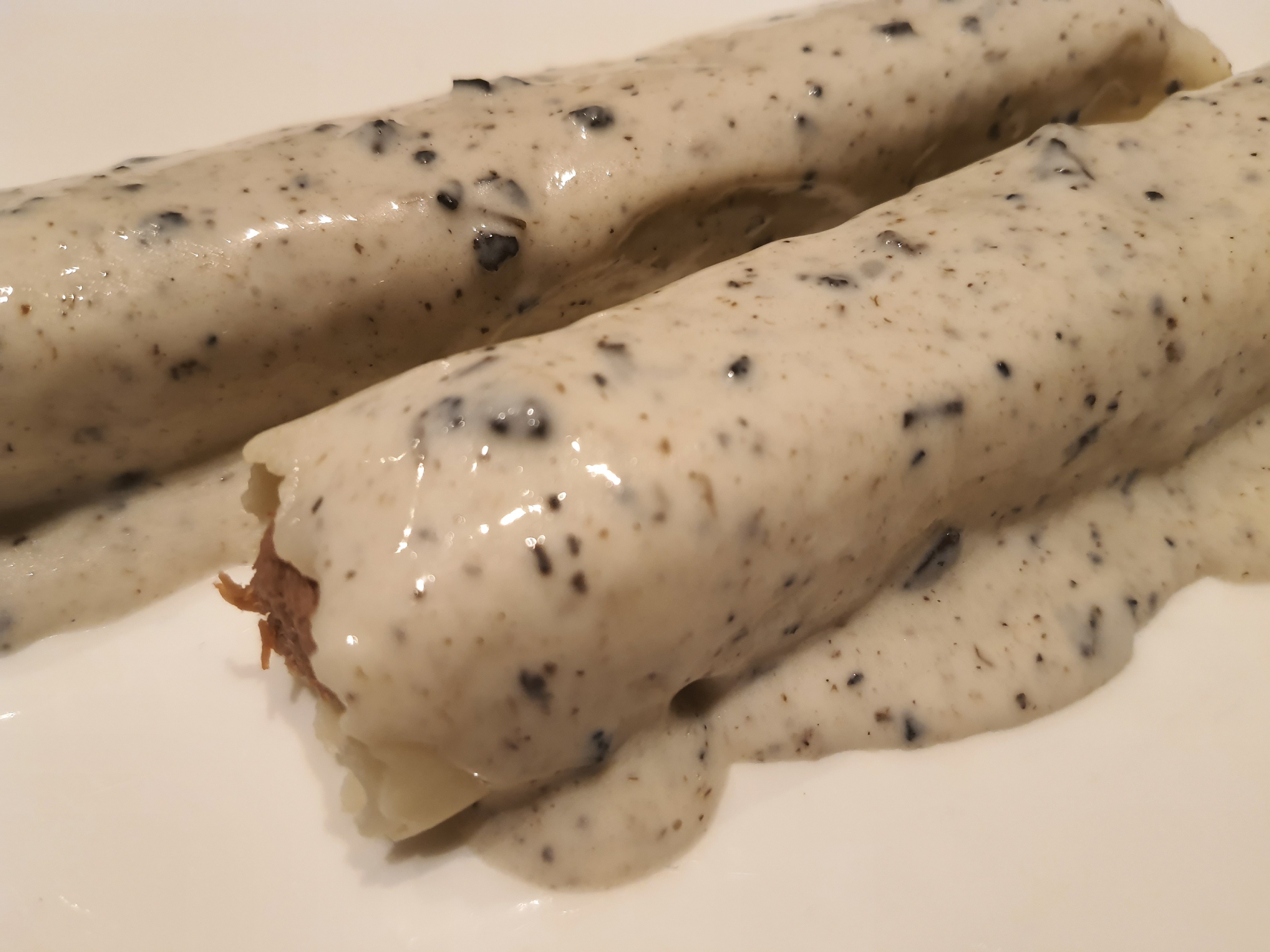 Canelones de confit de pato con salsa de trufa