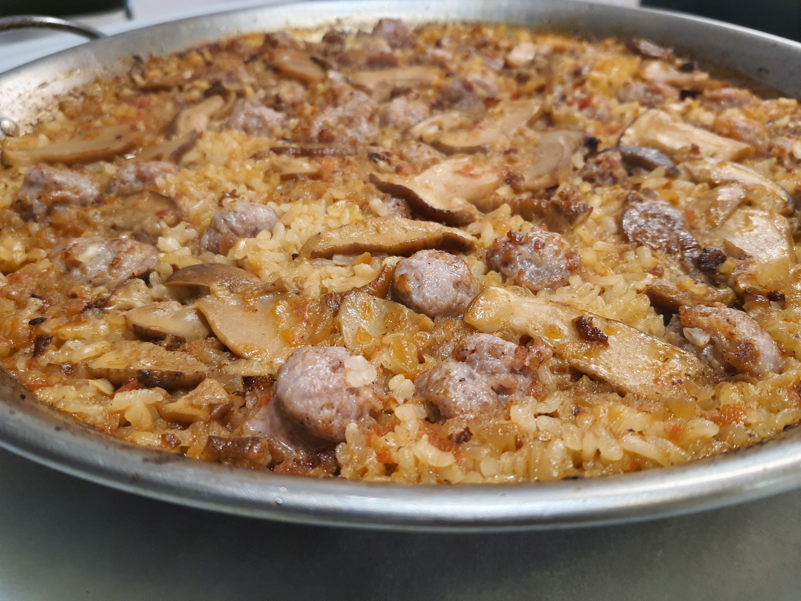Arroz seco con butifarra y ceps