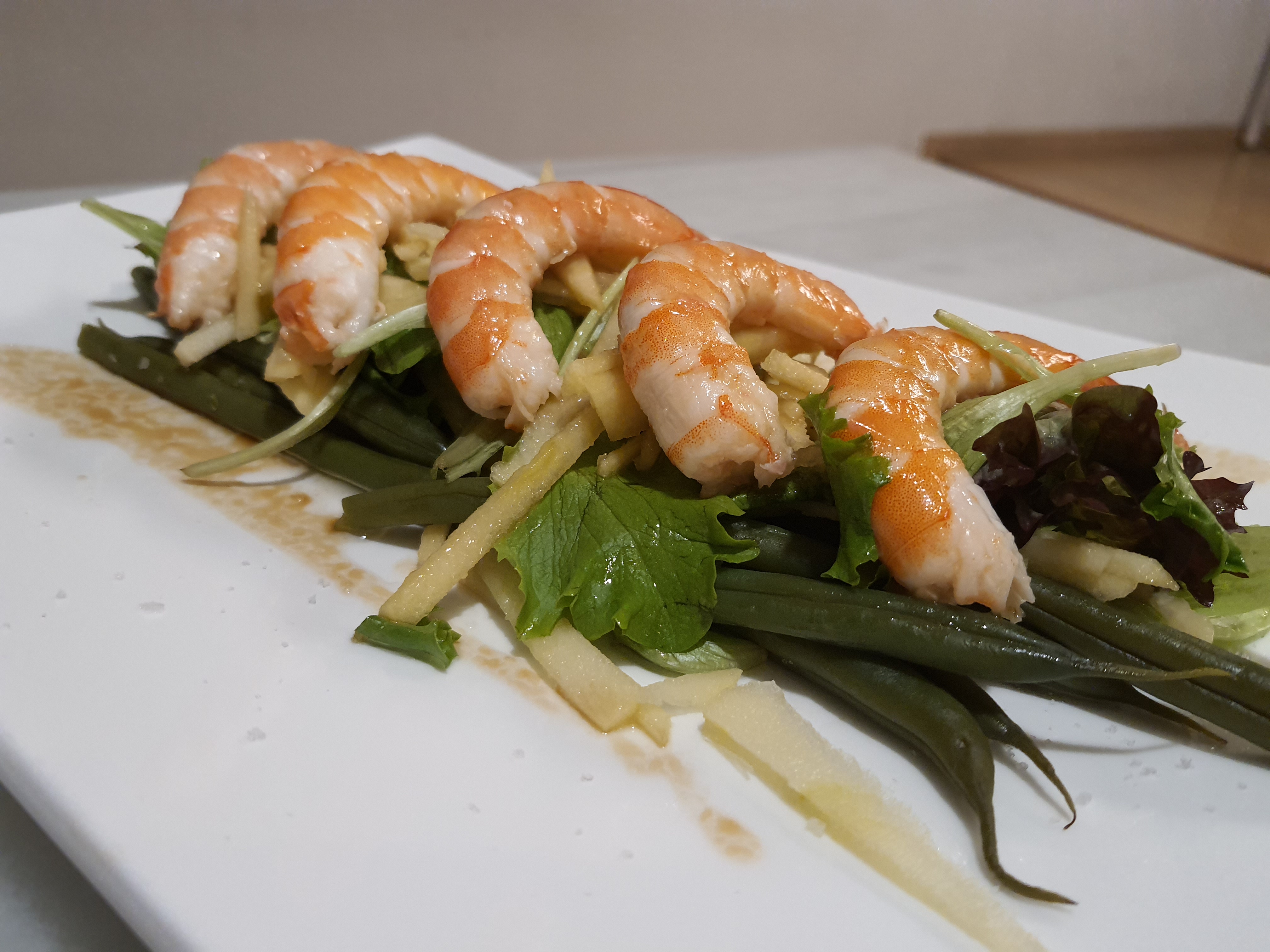 Ensalada de langostinos con judías verdes y manzana