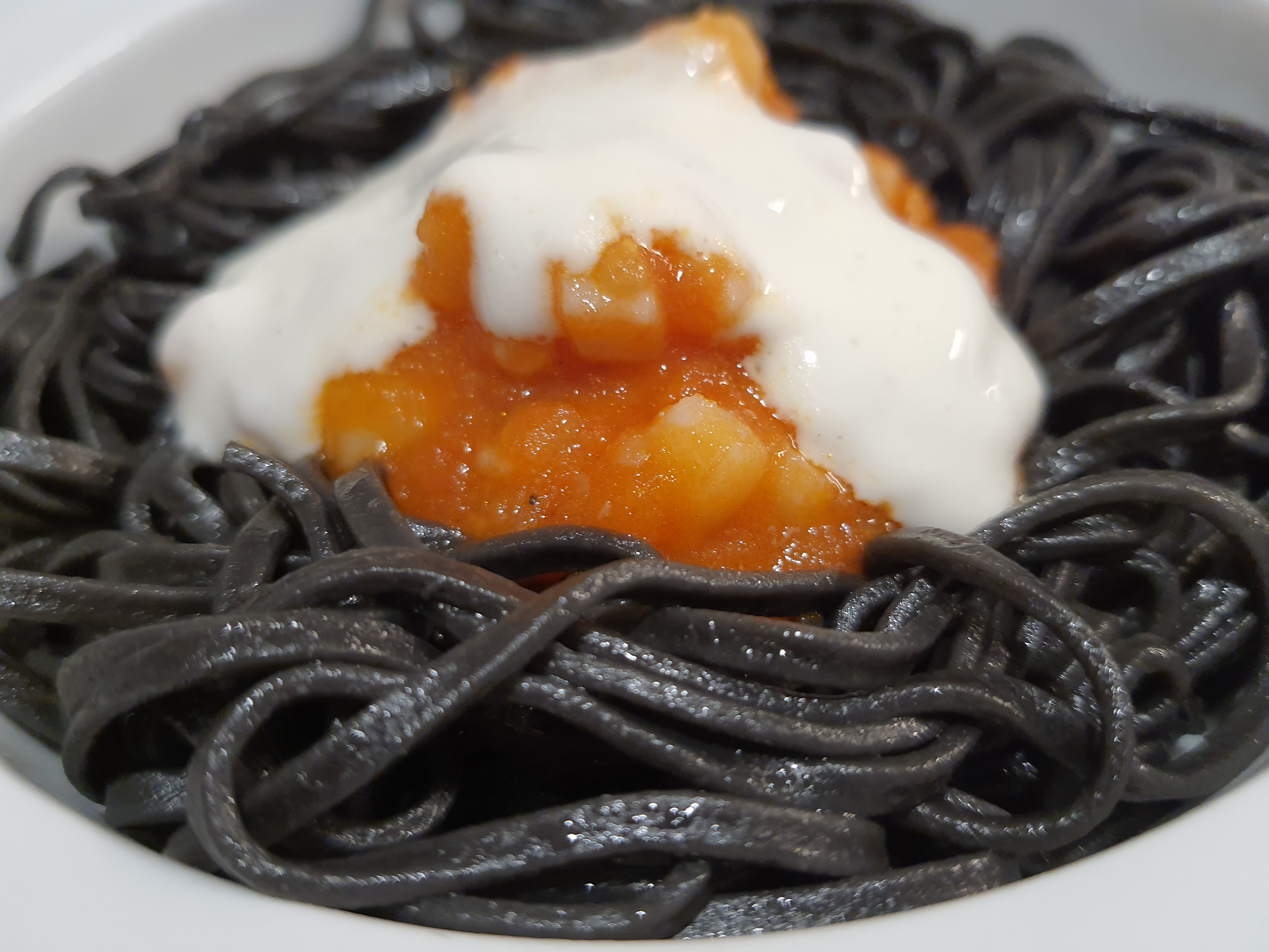Tagliatelle con boloñesa de sepia y emulsión de alioli