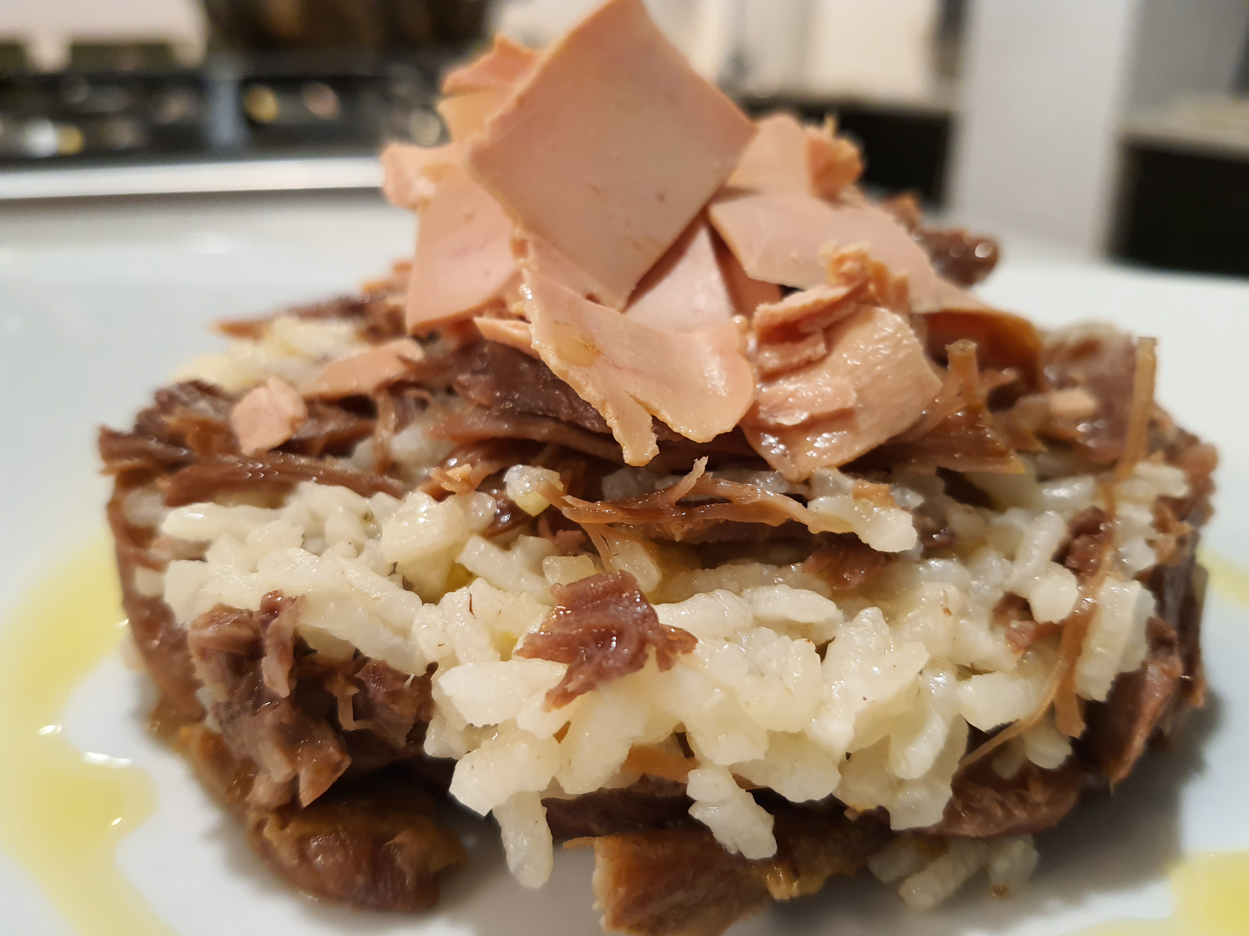 Arroz de confit de pato con foie al perfume de trufa