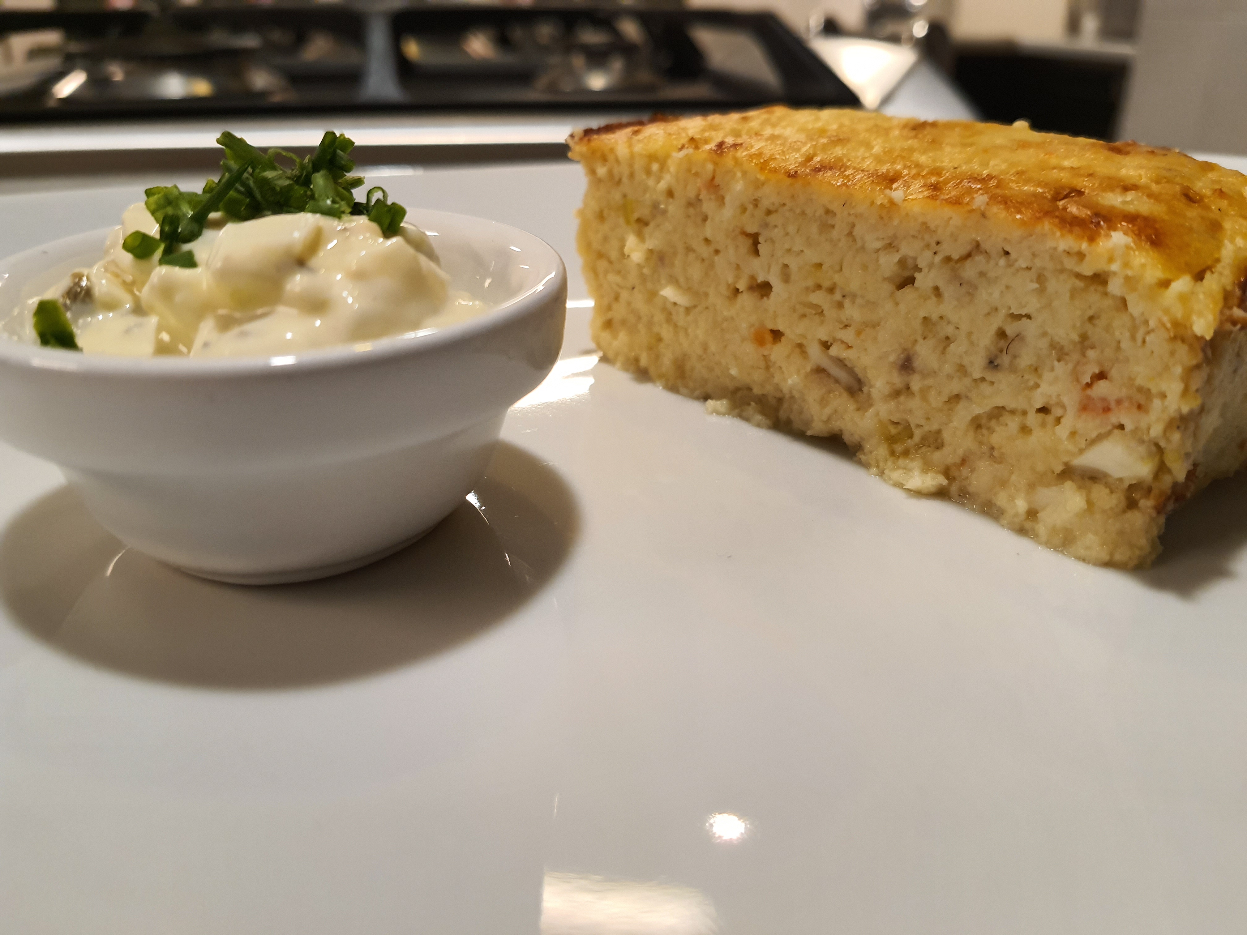 Pastel de pescado con salsa tártara